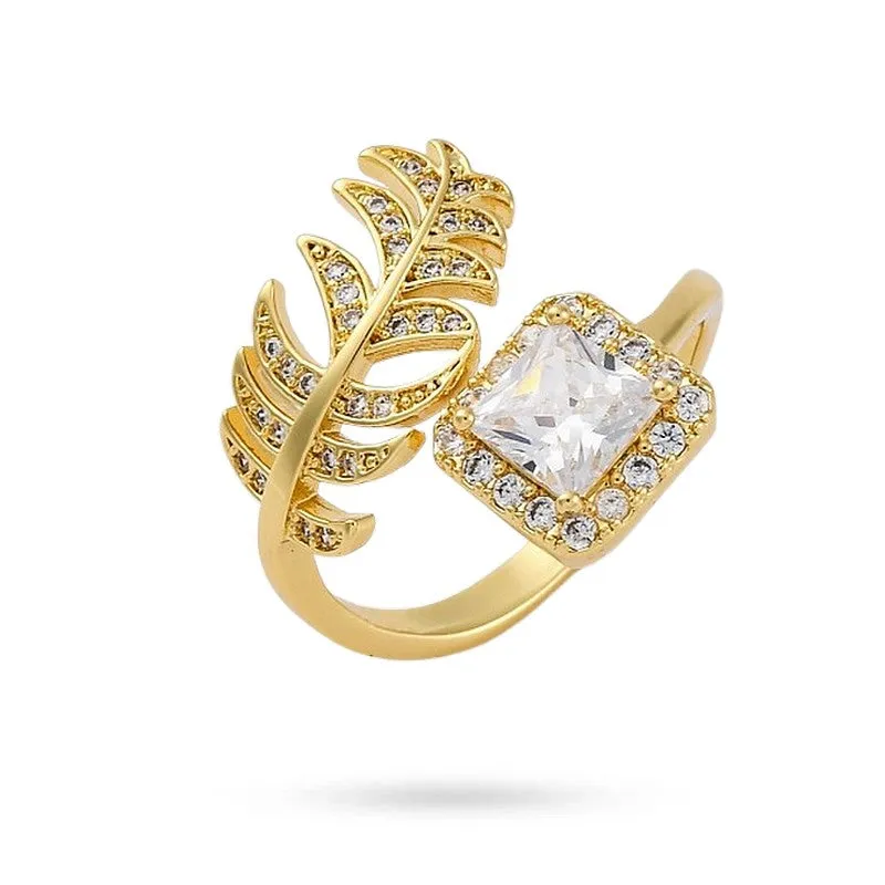 ✨ Bague Dorée Feuille Zirconiums Blancs ✨