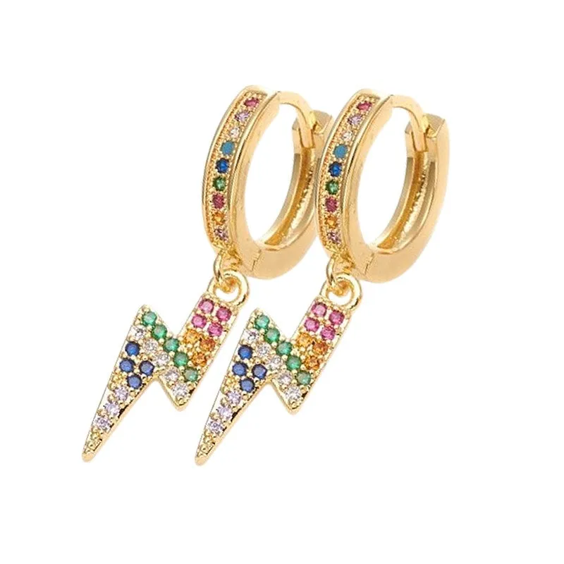 Design : Des créoles étincelantes avec un pendentif éclair en zirconium pour illuminer votre visage avec élégance.