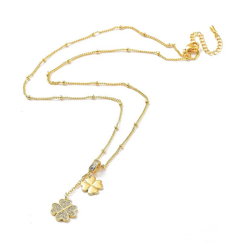 Design : Un collier raffiné orné d’un pendentif double trèfle étincelant pour une élégance incontestée. Les zirconiums sertis ajoutent une touche de brillance subtile à votre tenue.